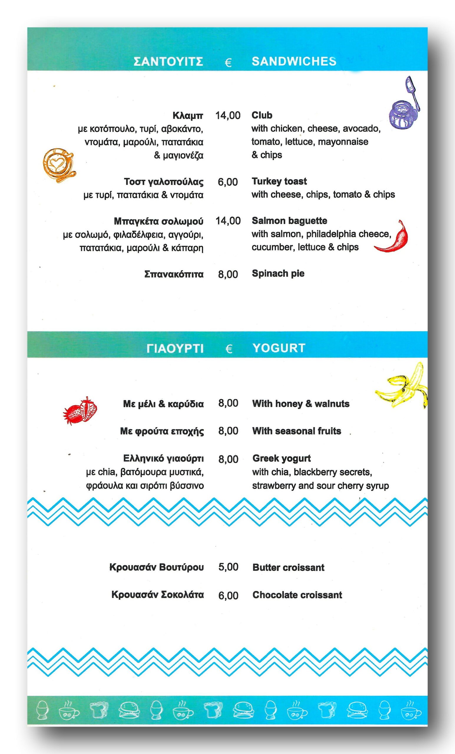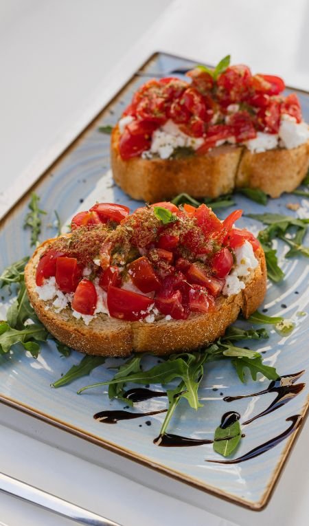 - Tomato bruschetta with feta cheese and basil.. 10€
